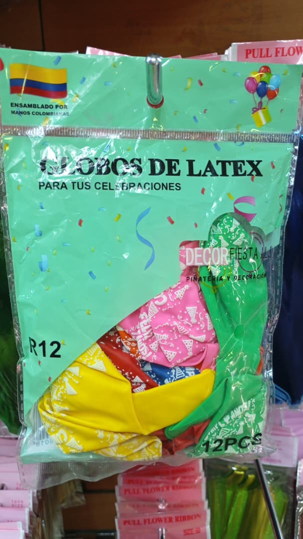 Globos Latex R12 Feliz Cumpleaños x12 unid