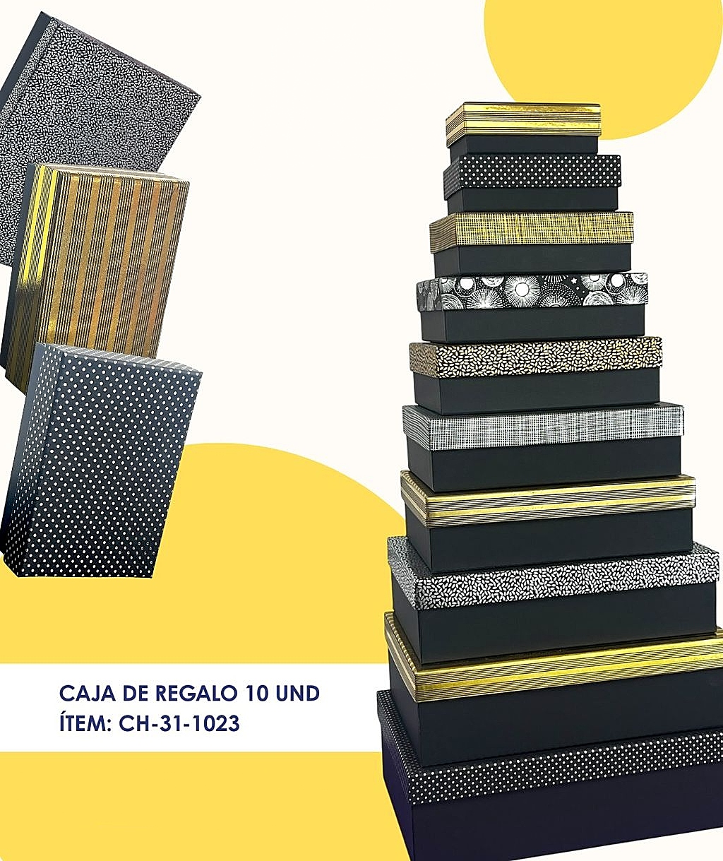 Eleva la presentación de tus detalles con este práctico y elegante set de 10 cajas apilables. Diseñadas en tamaños progresivos, son la solución perfecta para organizar o regalar con estilo.