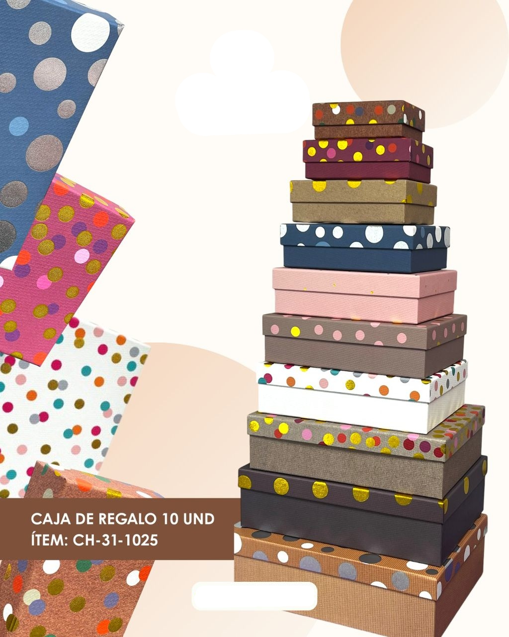Eleva la presentación de tus detalles con este práctico y elegante set de 10 cajas apilables. Diseñadas en tamaños progresivos, son la solución perfecta para organizar o regalar con estilo.