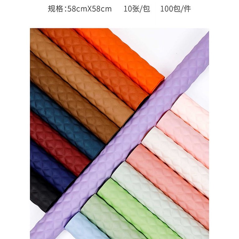 A diferencia del papel tradicional, este material destaca por su textura acolchada en relieve 3D (diseño de rombos o diamantes) que imita la apariencia del cuero o telas finas, aportando volumen y sofisticación a cualquier diseño floral.