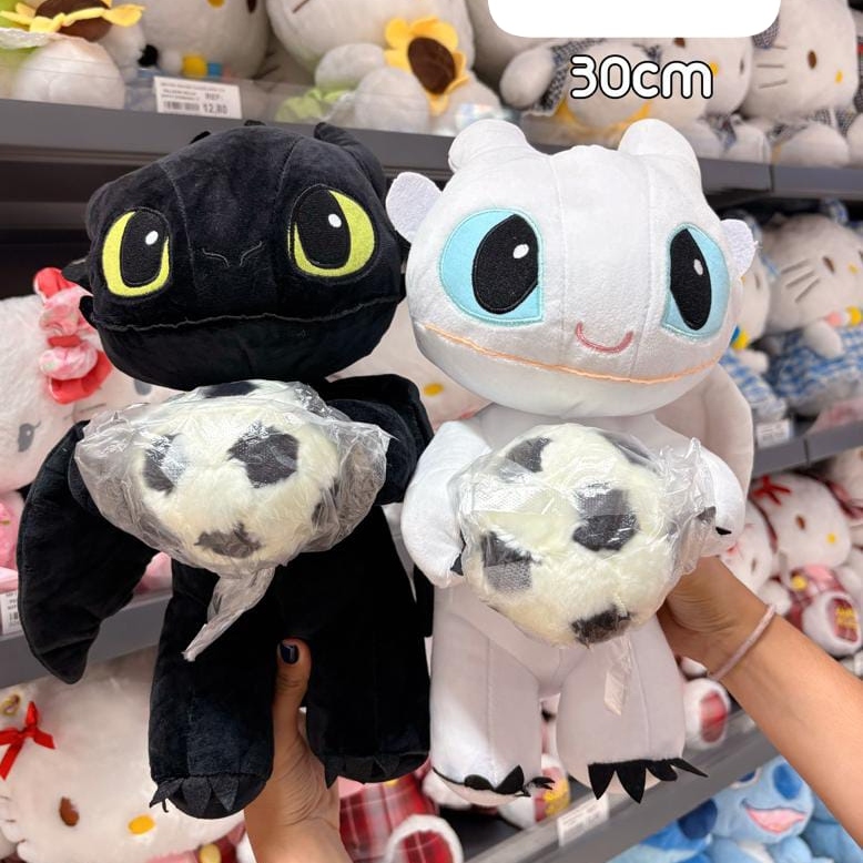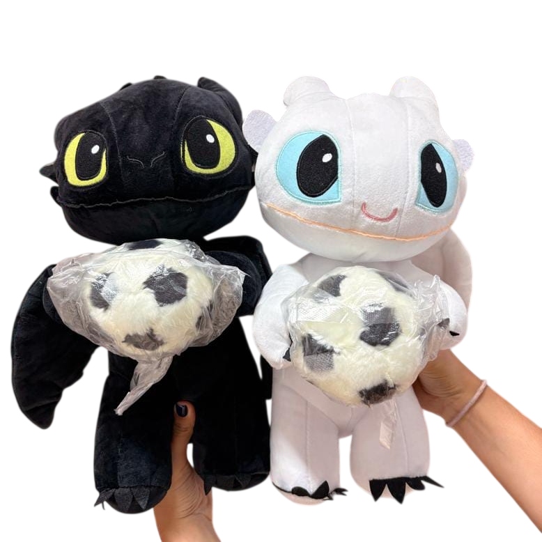 Estos adorables peluches de Chimuelo (Furia Nocturna) y Furia Luminosa son el regalo perfecto para fans de todas las edades. Con un diseño tierno y detallado, cada dragón viene sosteniendo un pequeño balón, listos para cualquier aventura o para decorar tu espacio favorito.